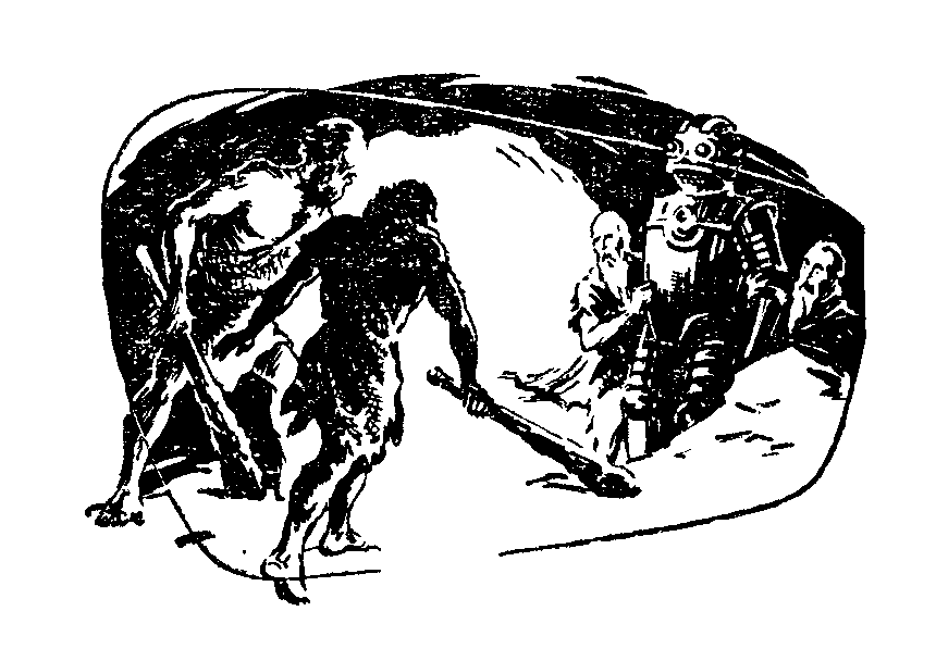 Ящер плюхнулся брюхом в воду. Голова его с бугром на темени оказалась как раз напротив охотника. Тот взмахнул дубиной и, крякнув, опустил ее на бугор.